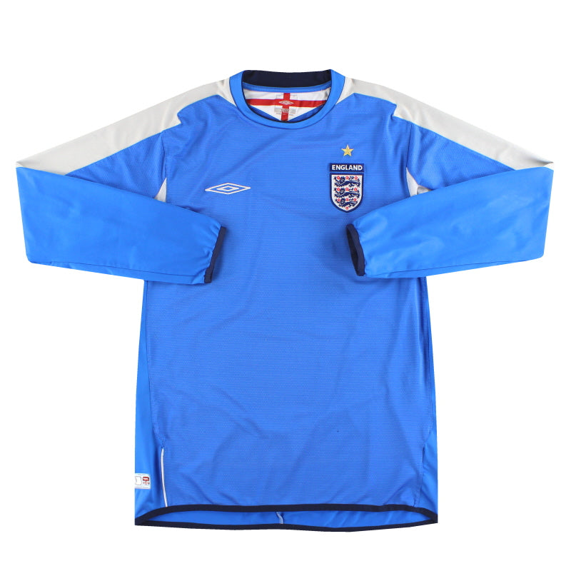 Condition Details – Pristine colour, very smooth material, odd tiny bobble, badges are excellentGoalkeeper shirt as worn when England made it to the quarter finals of the 2004 European Championships against Portugal, the game against the hosts finished 2-2 after extra time with England losing 6-5 on penalties.